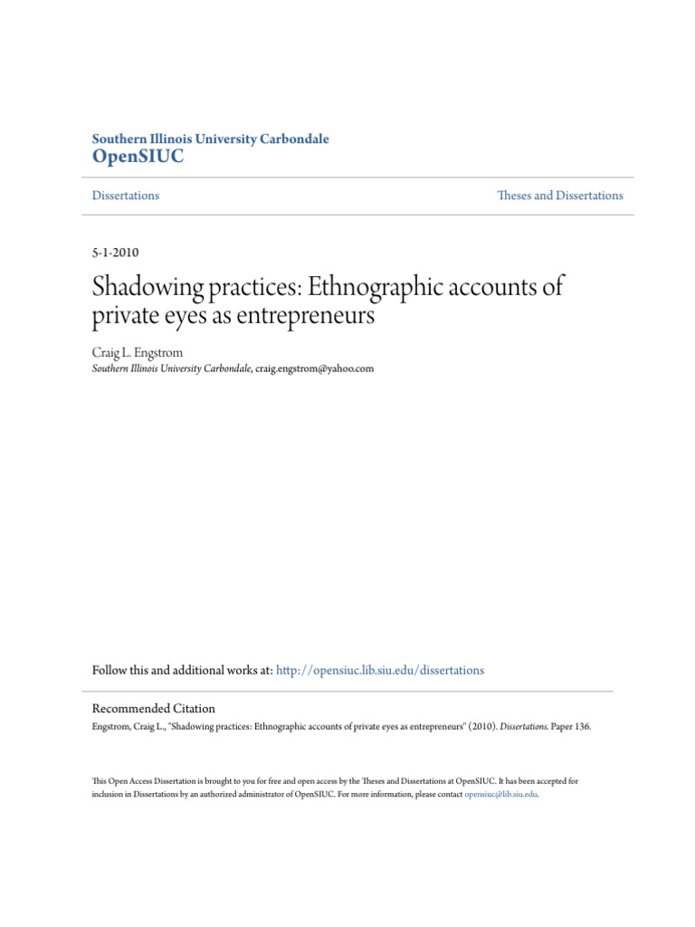 Shadowing Practices Ethnographic Accounts Of Private Eyes As Ent Pdf Entrepreneurship Narrative